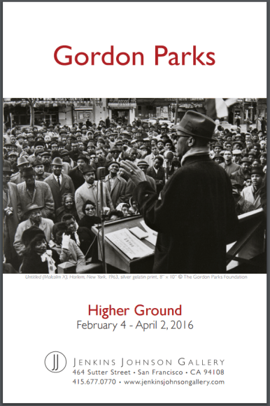 Jenkins Johnson Gallery, San Francisco is pleased to present Gordon Parks: Higher Ground, a solo exhibition of over sixty works by one of the most important photojournalists of the 20th century. The gallery’s second solo exhibition for Parks, February 4 through April 2, 2016, will commemorate his photo essays on the Civil Rights Movement. There will be an opening reception on Thursday, February 4, from 5:30 to 7:30 pm.