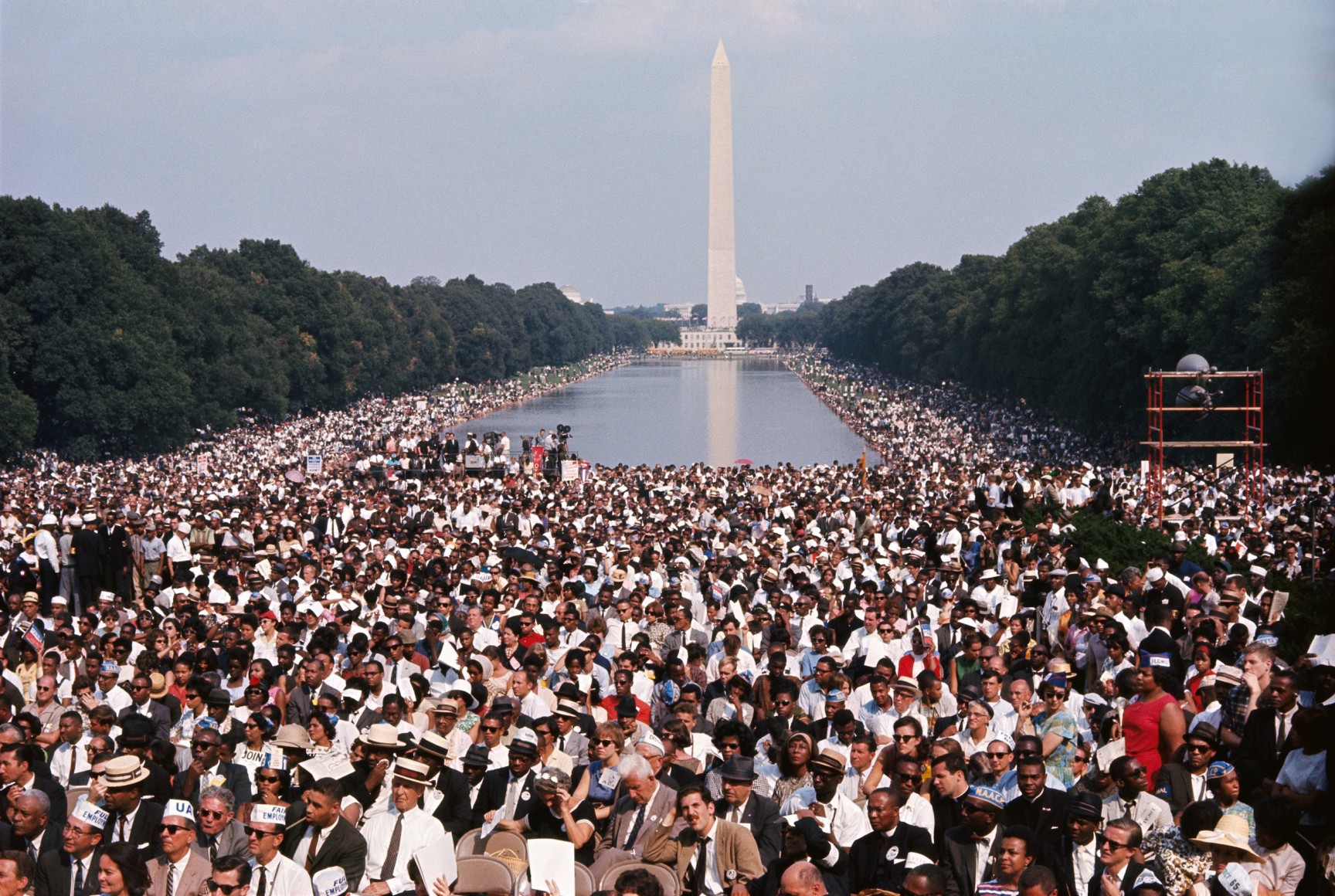Pressing onward, the Reverend Martin Luther King Jr. was the leader of the Civil Rights Movement. Gordon Parks captured the timbre and sound of the March on Washington in the photograph Untitled, Washington, D.C., 1963, where King gave his infamous “I have A Dream” speech. In contrast to the non-violent movement led by King, the Nation of Islam (Black Muslims) encouraged the separation of black and white Americans. They scorned the Civil Rights Movement for their emphasis on integration. Fed up with the government and its society, the Nation of Islam established their own subculture that was self-sustaining with separate schools, stores, places of worship, and self-defense training.