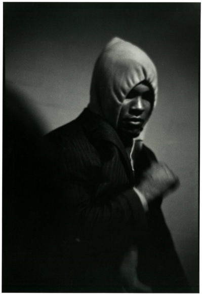 The boxer in this show is still. The legendary photographer Gordon Parks reveals Muhammad Ali, the leading symbol of athletic protest, in a rare moment of stunning silence. The boxing champion is framed in a doorway, praying.