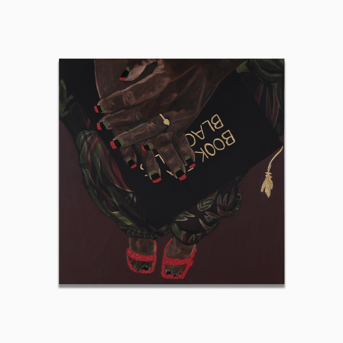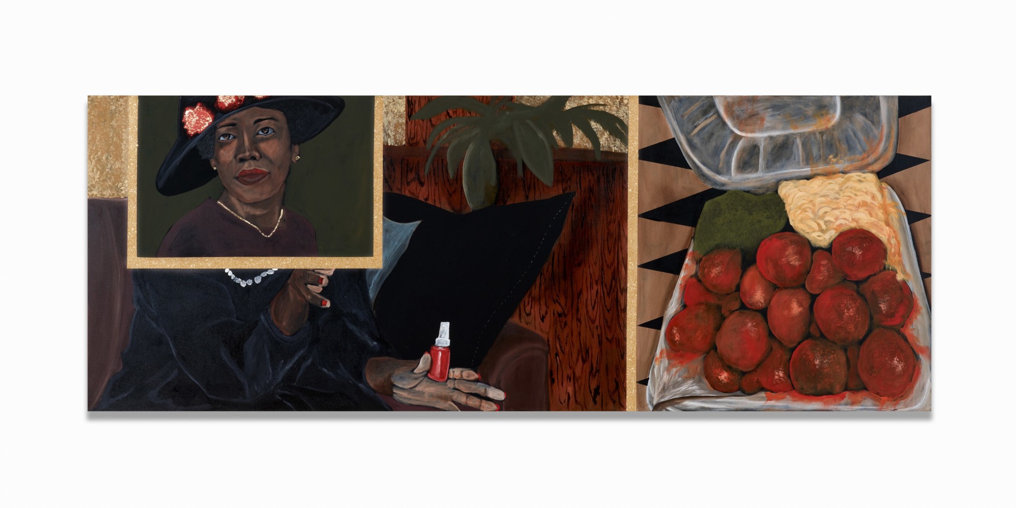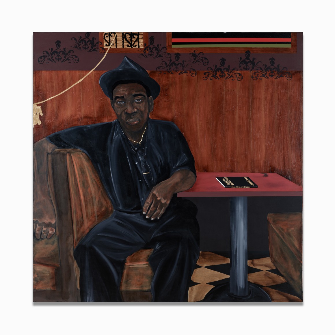 Church Folks was inspired by the Black churches at the heart of numerous southern communities, places that unite through shared faith, joy, and grief. Among the references for this body of work is Gordon Parks’s 1956 series Segregation Story, which documented the everyday lives of Black Americans in the Jim Crow South. Holmes was particularly interested in Parks’s images of the events just before and after the church service, scenes that for Holmes captured “what felt like home.” Church Folks focuses on these quotidian moments through tableaux and portraits that are imagined yet familiar, and memorialized through symbolic objects, gestures, and palette that speak to Holmes’s identity. Together, they represent what he terms “the universal language of the American South.”
