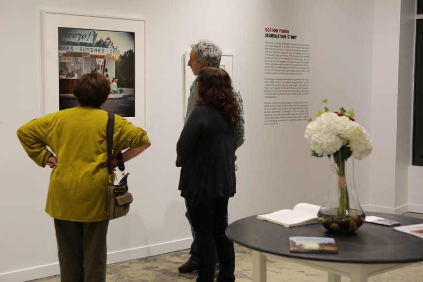 In addition to staying open late into the evening, we partnered with the Jacob Burns Film Center for a screening of Parks' 1968 film, A Diary of a Harlem Family, followed by a panel discussion with Mario Sprouse, Gene Young, and Leslie Parks, moderated by Jonathan Demme. A survey of Parks' work on The Learning Tree was installed in the JBFC's Jane Peck Gallery located on the third floor of the theater.