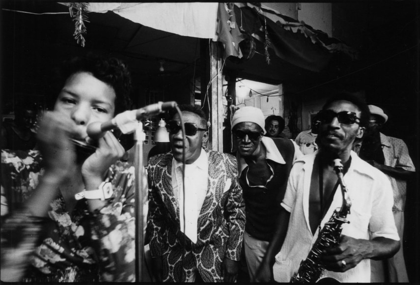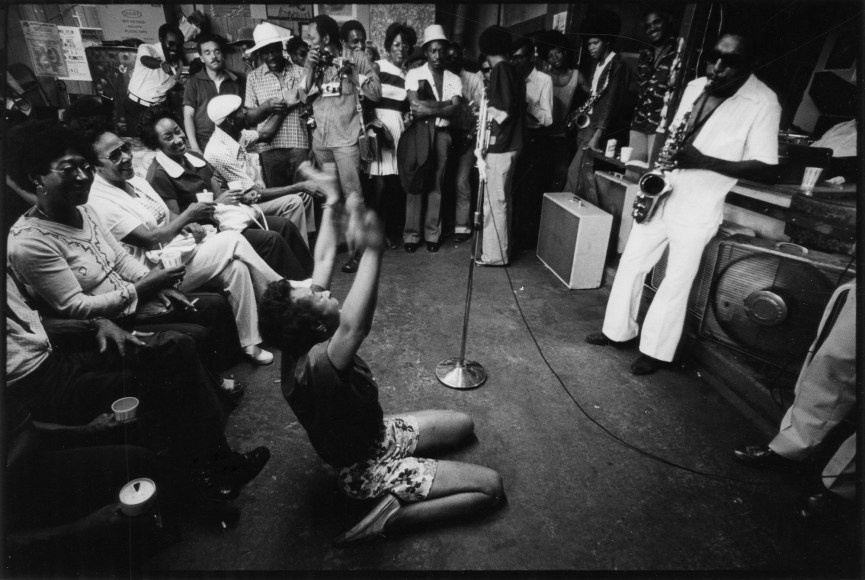 The regulars there started calling me the Picture-Taking Lady. With my 20 mm Vivitar wide-angle lens, I could get right up to everyone. They would come and get me and ask me to take their picture, and I would give them a copy later. It was important for them to see themselves. I always try to give back—if you're taking someone's picture and you have an opportunity to give them a copy, do it. I gave Arthur “Pops” Simpson, the proprietor of the Garage, some of my photographs. I would go home, develop my film and print, and then the next Sunday or whenever I went, I would take them to Pops and he started putting them on the walls of the Garage.