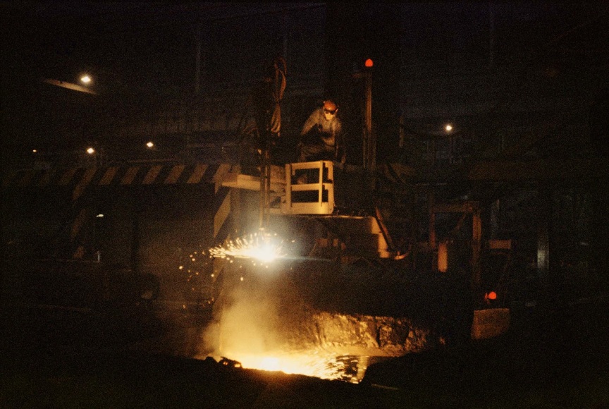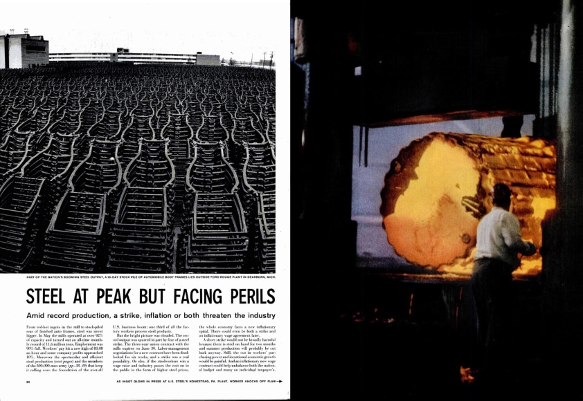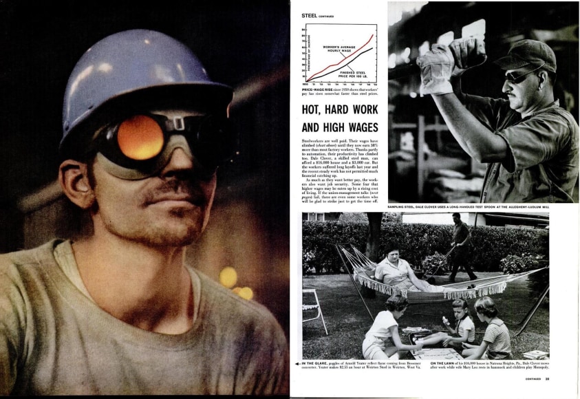 The June 22, 1959 issue of Life magazine celebrated the success of the steel industry in the United States: “Steel was never bigger,” it states, “the spectacular and efficient steel production and the members of the 500,000-man army that keep it rolling were the foundation of the overall U.S. business boom: one third of all the factory workers process steel products.” The opening paragraphs were accompanied by dazzling color photographs taken by Gordon Parks at the Jones and Laughlin Steel Company’s mill in Aliquippa, Pennsylvania. Yet this bright picture was clouded by an impending labor strike, spurred by the end of a union contract, demand for higher wages, and fear of a subsequent rise in steel prices. Indeed, steel has played a major role in the history of the U.S. economy. But as the article indicates with its too-subtle descriptions of labor inequities, the American steel industry also carries with it a history of industrial and environmental racism.