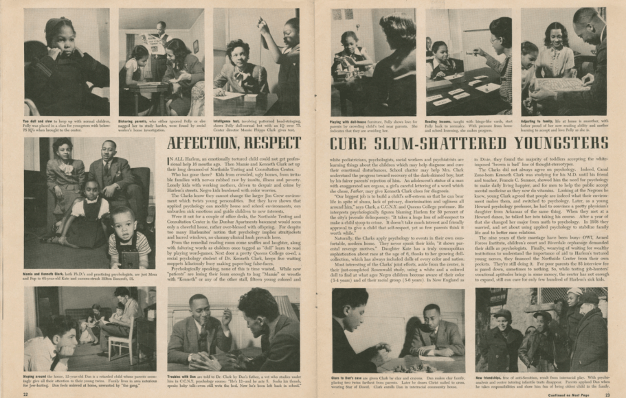 Among those being honored on May 23rd is special guest Kate Clark Harris, the daughter of Dr. Kenneth Clark and Dr. Mamie Clark, the first African American man and the first African American woman, respectively, to earn a Ph.D. in psychology from Columbia University in the early 1940s. Over the course of 14 years, they developed and conducted what became known as the "Doll Tests"—groundbreaking experiments that revealed the psychological effects of segregation on African American children. The tests were conducted using several dolls, all identical except for skin color. The Black children, ages 3–7, were asked to identify which doll they preferred. The majority preferred the white doll, leading Drs. Clark to conclude that “prejudice, discrimination and segregation” damaged their self-esteem and caused Black children to develop a sense of inferiority. In 1947, Gordon Parks photographed the Clarks conducting their “Doll Tests” for Ebony magazine for an article titled “Problem Kids: New Harlem clinic rescues ghetto youth from emotional short circuit.” The "Doll Test" research was later used as key evidence in school desegregation lawsuits including, notably, Brown v. Board of Education (1954).