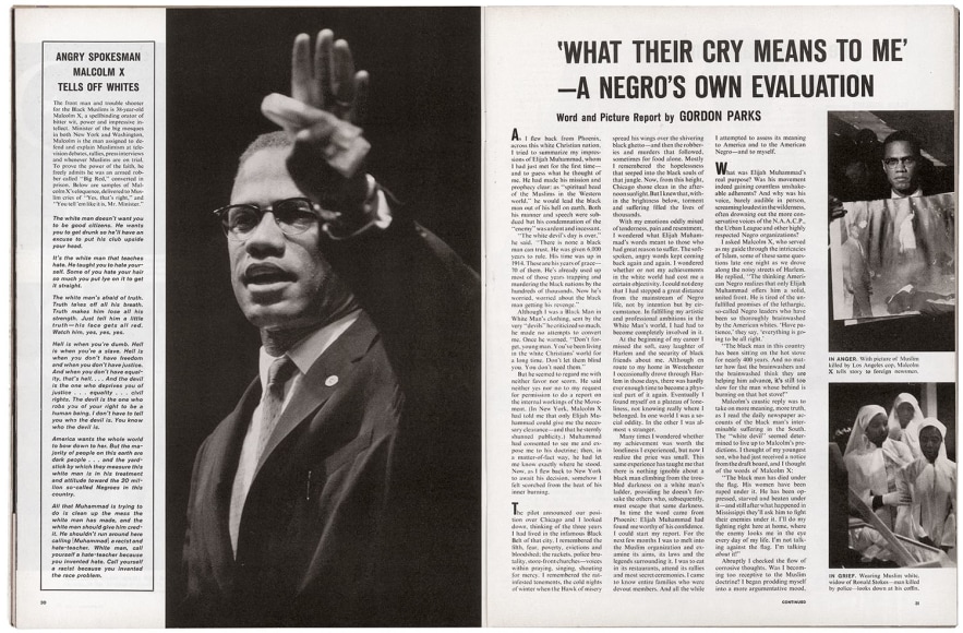 With these words, Gordon Parks introduced his contribution to a Life magazine story on the Black Muslims, published in the May 31, 1963 issue and titled “What Their Cry Means to Me.” Parks’s words, paired with a separate feature article by Life’s journalists, offered an unprecedented glimpse into daily life within the Nation of Islam, which in 1963 was newly headquartered in Chicago. It remains one of Parks’s most celebrated and groundbreaking assignments for Life magazine—in equal measure for its subject matter and his approach.