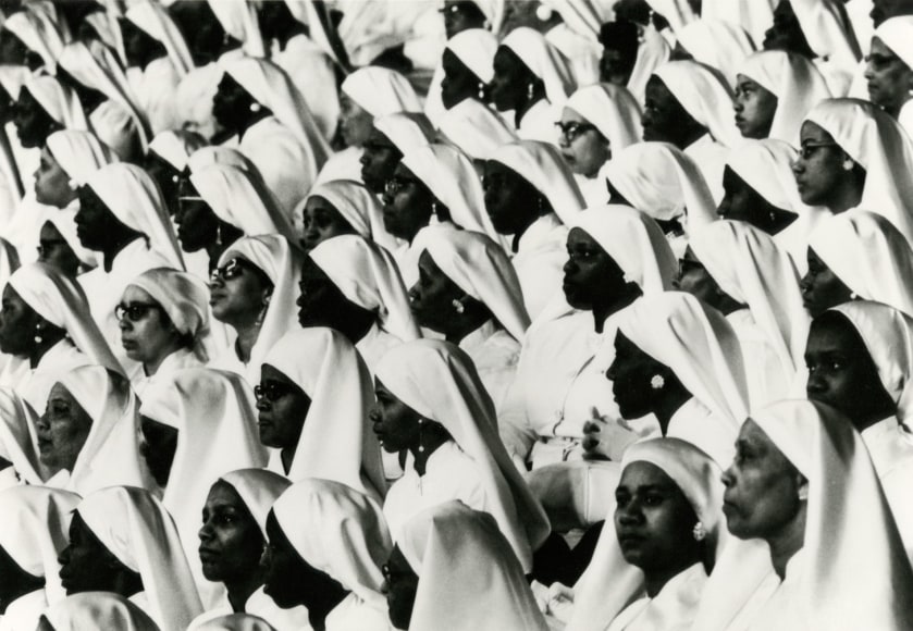 The essay Parks wrote to accompany his photographs in Life reflected on his dual status as insider and outsider: “I was a Black Man in White Man’s clothing, sent by the very ‘devils’ [Elijah Muhammad] criticized so much. . . . I wondered whether or not my achievements in the white world had cost me a certain objectivity.” He concludes, “I sympathize with much of what they say, but I also disagree with much of what they say. . . . Nevertheless, I acknowledge that the circumstance of common struggle has willed us brothers.” These words resonate now as ever, echoing Parks’s lifelong charge—to explore photography’s power as well as its biases.