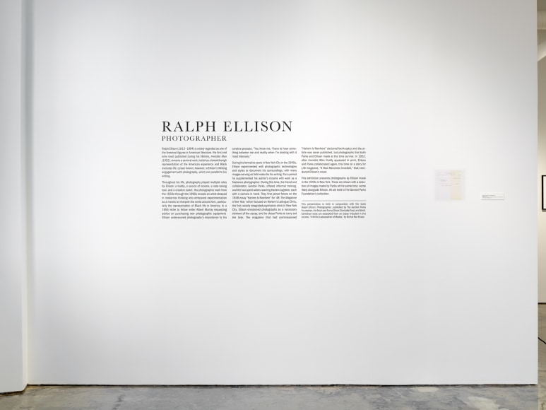 This exhibition presents photographs by Ellison made in the 1940s in New York. These are shown with a selection of images made by Parks at the same time, some likely alongside Ellison. All are held in The Gordon Parks Foundation's archives. This presentation is held in conjunction with the book Ralph Ellison: Photographer, published by The Gordon Parks Foundation, the Ralph and Fanny Ellison Charitable Trust, and Steidl.