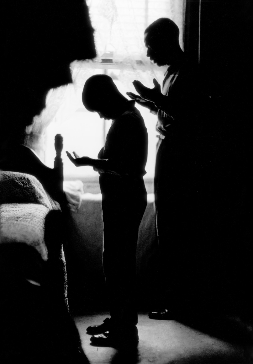 His first contact was with perhaps the most renowned and tendentious member of the group, Malcolm X. After hearing a fiery speech in Harlem, Parks introduced himself, only to find that the charismatic minister already knew who he was. He invited Parks to a special meeting with Elijah Muhammad, who had been the spiritual leader of the Nation of Islam for nearly 30 years, to discuss the possibility of a story in Life. The slight and gentle-looking Muhammad asked Parks sternly: “Why does a bright young man like you work for the white devils?” Malcolm X later told Parks, grinning, “I think he likes you” (Half Past Autumn, 1997).