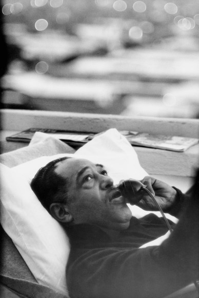 Ellington became a hero for the young man. Decades later, in 1960, Parks was overjoyed by the opportunity to tour with Ellington’s band, calling it “a trip through paradise” (To Smile in Autumn, 1979). By then, Ellington was the foremost big-band leader, having recorded with John Coltrane, Charles Mingus, and Max Roach. In his photographs, Parks revealed his admiration for the musician’s pensive elegance, magnetic personality, and exceptional stage presence.
