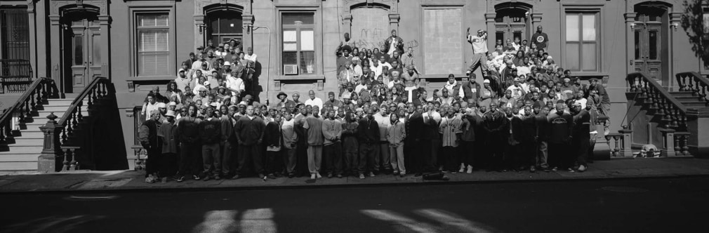 In 1958, Art Kane (1925–1995) photographed 57 jazz musicians spilling off a brownstone stoop in Harlem for an Esquire magazine issue about the evolution of the genre. Since the Harlem Renaissance, the neighborhood had been a notable center of the uniquely American sound of jazz. His photograph—commonly referred to as A Great Day in Harlem—ingrained itself in our collective memory, epitomizing the “golden age” of jazz and Harlem. In 1995, Life magazine brought together 10 of the 12 surviving participants of Art Kane’s photograph “Golden Age of Jazz” (1958) where they stood nearly 40 years earlier at 17 East 126th Street. Gordon Parks took Kane’s place and made a new photograph.  In the moving image, the boarded up and roofless shell of the brownstone emphasized  the absent musicians who had died. Four decades after Kane, Gordon Parks visited the same brownstone at 17 East 126th Street for XXL magazine to photograph hip-hop artists, producers, and influencers. A Great Day in Hip-Hop shows 177 of a new genre’s “golden age” overflowing the stoop of number 17 to the two stoops on either side and reclaiming the space for the next generation. In celebration of the twentieth anniversary of the historic Great Day in Hip-Hop, the 2019 Gordon Parks Foundation Annual Awards Dinner and Auction brought together a group of artists who partook in the 1998 photograph.