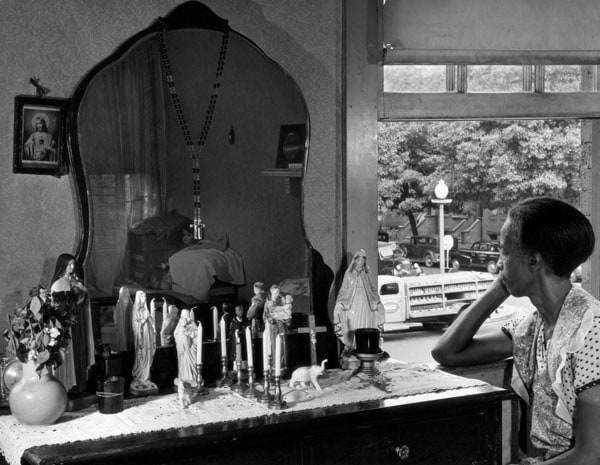 In his extensive documentation of Watson’s daily life, Parks placed emphasis on her religious community. The role of the church in African American communities was keenly understood by Parks, and was a subject that he returned to throughout his career. Photographing local churches and Watson’s spiritual life was integral to Parks’s aim of showing the complexity and humanity of his subjects. This exhibition highlights these photographs through text written by Melanee C. Harvey, excerpted from an essay included in the book American Gothic: Gordon Parks and Ella Watson.