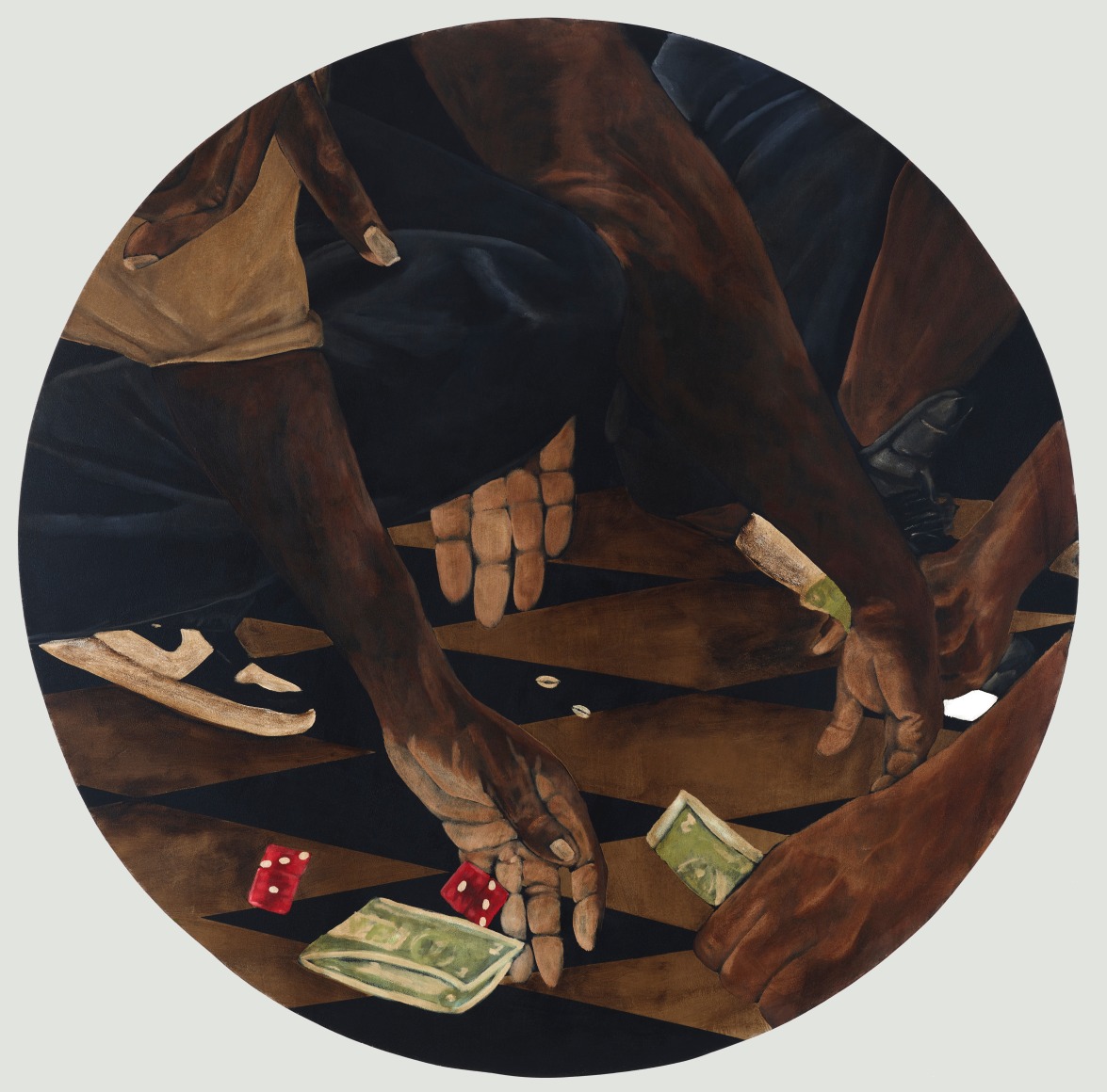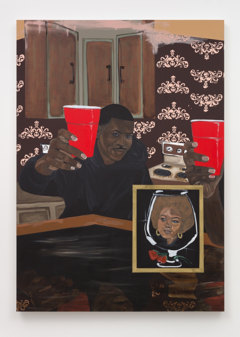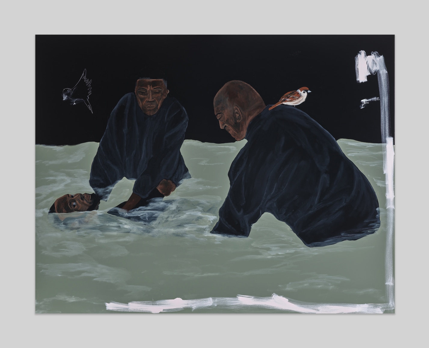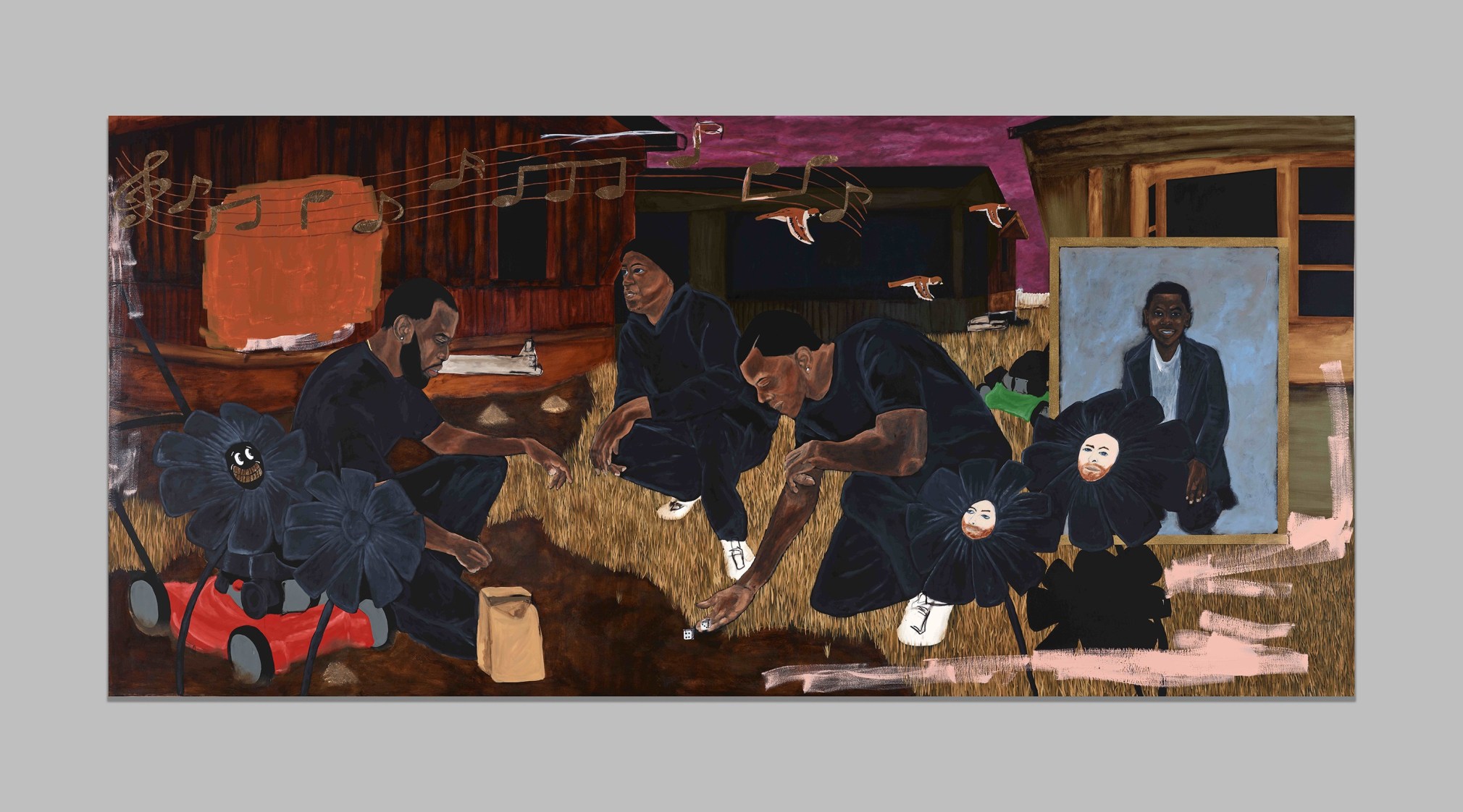 Jammie Holmes (b. 1984) is a self-taught painter from Thibodaux, Louisiana, whose work tells the story of contemporary life for many Black families in America. Through portraiture and tableaux, Holmes depicts stories of the celebrations and struggles of everyday life, with particular attention paid to a profound sense of place. Growing up 20 minutes from the Mississippi River, Holmes was surrounded by the social and economic consequences of America’s dark past, situated within a deep pocket of the Sun Belt, where reminders of slavery exist alongside labor union conflicts that have fluctuated in intensity since the Thibodaux Massacre of 1887. His work is a counterpoint to the romantic mythology of Louisiana as a hub of charming hospitality, an idea that has perpetuated in order to hide the deep scars of poverty and racism that have structured life in the state for centuries.
