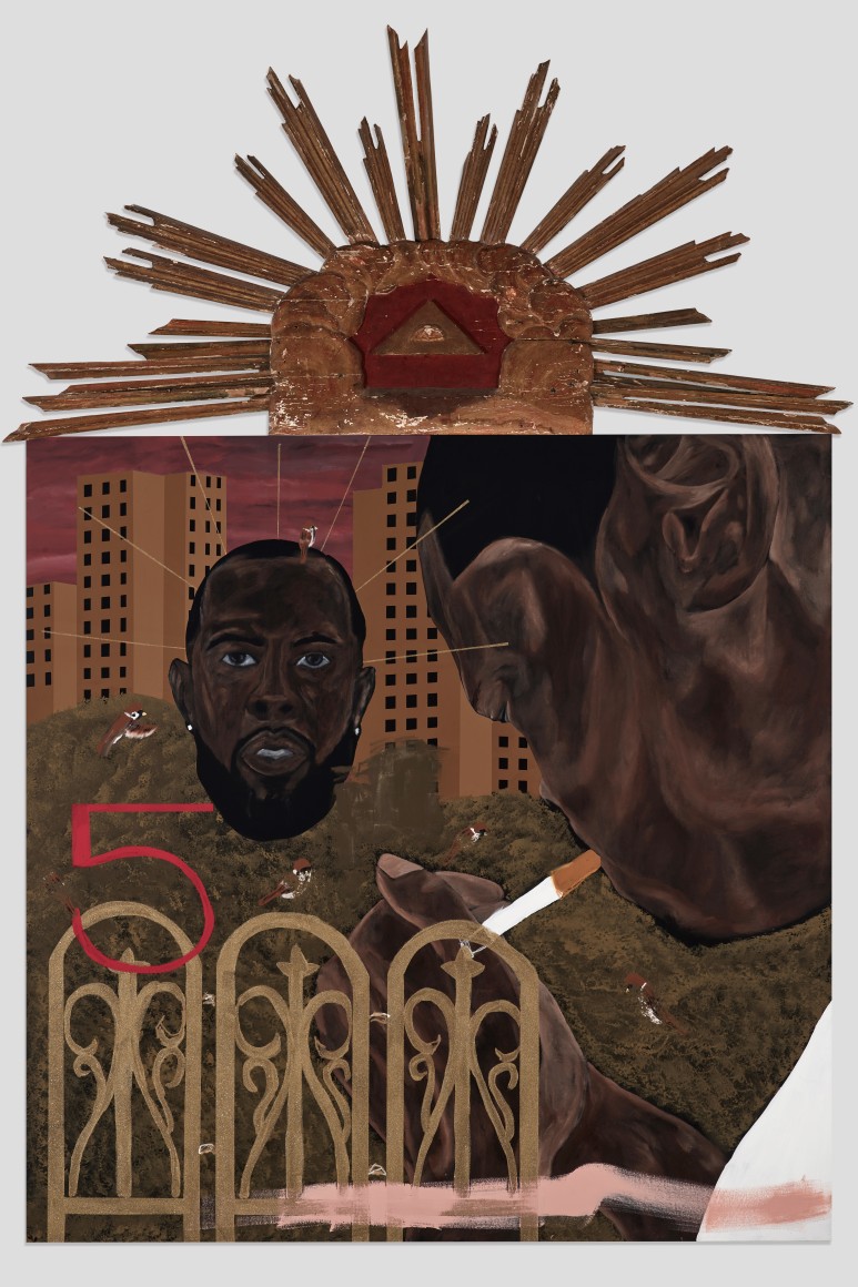 Following his graduation from high school, Holmes spent more than a decade working in an oil field. He relocated to Dallas in 2016. His work has most recently been presented in exhibitions at Library Street Collective, Detroit; Deitch Projects, Los Angeles; Marianne Boesky, New York; Nassima-Landau Projects, Tel Aviv; Dallas Museum of Art; and Dallas Contemporary, among others. His work is also included in the permanent collections of the Aïshti Foundation, Brooklyn Museum, Dallas Museum of Art, Hammer Museum, ICA Miami, Museum of Fine Arts, Houston, Nasher Museum of Art at Duke University, New Orleans Museum of Art, Perez Museum of Art, X Museum, and The Xiao Museum of Contemporary Art. Holmes lives and works in Dallas, Texas.
